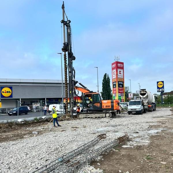 Executie piloti forati tip CFA- diametru 400 si 600, la adancime de 12 m - locatie Jud. Giurgiu, magazin Altex