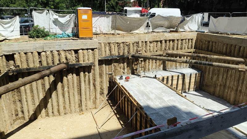 Executie sprijinire berlineza si piloti forati tip CFA, excavatie, grinda de coronament - diametru 300 - 400 - 600, la adancime de 12 m