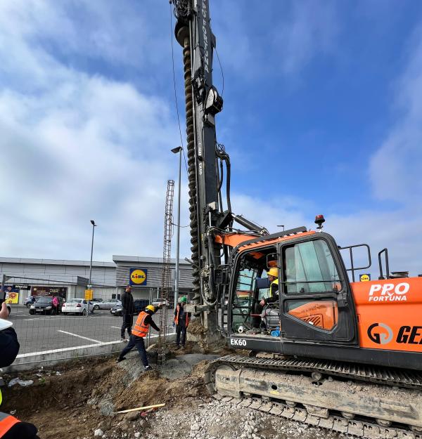 Executie piloti forati tip CFA- diametru 400 si 600, la adancime de 12 m - locatie Jud. Giurgiu, magazin Altex