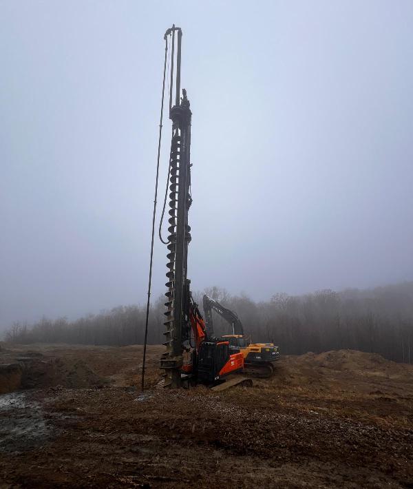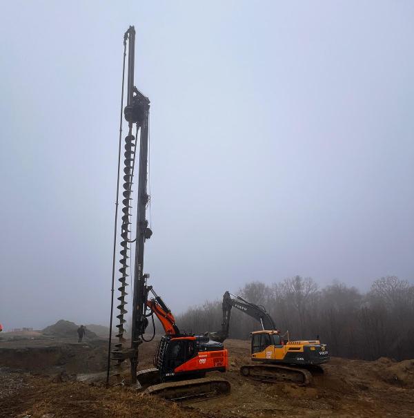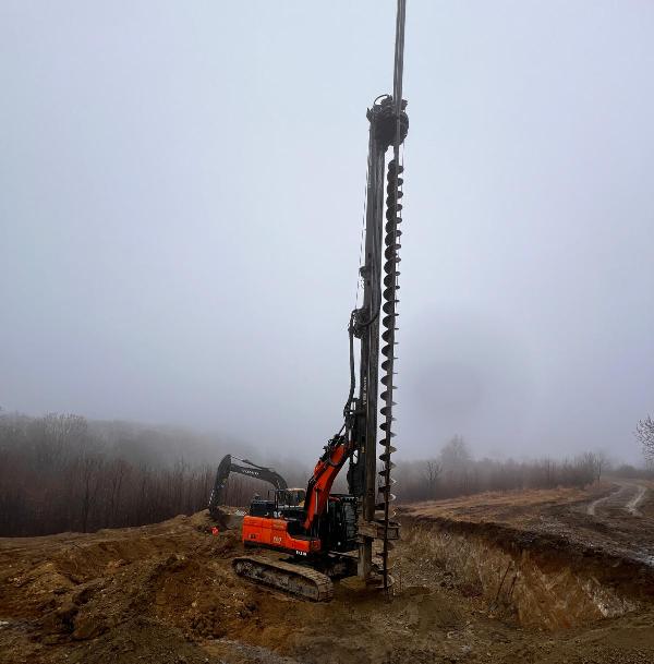 Executie piloti forati diametru 600 tip CFA cu 12 m adancime - foreza Geax EK110 CFA, ansamblu rezidential ONE Jud. Buzau